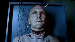 ![]() The formerly detached head of Thomas Jerome Newton (Sebastian Roché) is reattached to a body. | |