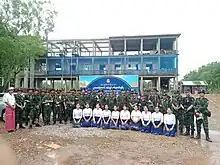 The Mon National Liberation Army (Mon: ဒပ်ပၞာန်ဗၠးၜးကောန်ဂကူမန်; Burmese: မွန်အမျိုးသား လွတ်မြောက်ရေး တပ်မတော်; abbreviated MNLA) is a Mon insurgent group in Myanmar (Burma).[2] It is the armed wing of the New Mon State Party (NMSP), and has been fighting government forces since 1949, though under different names. The NMSP signed the Nationwide Ceasefire Agreement (NCA) on 15 October 2015 with several other insurgent groups and the government of Myanmar.