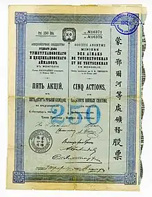 The building is the former site of the Mongolor company.[1] Mongolor stands for "Mongol Or" in French meaning Mongolian Gold. Mongolor LLC was the new name given in 1900 to an expanded version of the "Joint Stock Company for the Mining Entreprise in the Tushetu and Setsen Khan Aimags of Mongolia" which was itself founded in 1899 based on a 25-year gold mining concession granted to Victor von Grot, an official of the Russian Embassy in Peking. Von Grot, of Belgian origin, was in his thirties. The Mongolor company had investment from Russia, the Netherlands, Belgium and France. It was incorporated in Saint Petersburg. The company was managed in Mongolia by a Jewish engineer who received the title of Baron under the Qing Dynasty and became Baron Zanzer in honour of Zanabazar, the first Bogd Gegen of Mongolia.