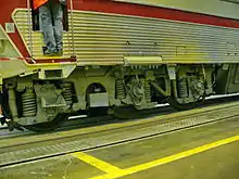 A monomotor bogie (French: bogie monomoteur) is a form of traction bogie used for an electric locomotive or diesel-electric locomotive. It is distinguished by having a single traction motor on each bogie.