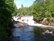 The park is divided in three sub-watersheds, namely the Rouge (through the Diable River) of The Assumption and the Matawin. Streams and forms lakes are greatly influenced by the shortcomings of the Canadian Shield. There are over 400 lakes in the park, including the largest, Lake Cypress, is 9 square kilometres (3.5 sq mi). Most lakes are located in the northern part of the park, the southern portion having a rugged landscape. The position of the park at the head of several watersheds ensures good water quality in streams.[4]