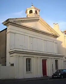 The Grade II*-listed[77] former St Stephen's Church on Montpelier Place closed in 1939 and is now used as a day centre for homeless people.[35] George Cheesman designed the plain stuccoed Classical façade, with Doric pilasters and an octagonal lantern,[78] in 1851. Behind it lies the opulent former ballroom of the Castle Inn, built by John Crunden in 1776 and later transported to Montpelier Place.[35] Arthur Blomfield made additions to the church in 1889. It was refurbished after a fire in 1988.[77]