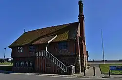 The Aldeburgh Museum was established by the Aldeburgh Literary Society in a building in Aldeburgh High Street in 1912. The collection was placed in store in the 1940s but taken out of store and placed on display on the ground floor of the moot hall in 1955. The museum became a charitable incorporated organisation known as the Aldeburgh Museum Charitable Trust in 2016.[10] Items in the collection include archaeological remains from the Snape Anglo-Saxon Cemetery and other local sites, a 14th century chest used for the storage of the borough records, and items relating to the Aldeburgh lifeboat disaster, in which seven lifeboatmen died, in 1899.[14][15]