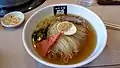 The naengmyeon from Hamhung can be separated into two types: bibim naengmyeon (Korean: 비빔 냉면; "mix cold noodles"), served without broth but mixed with chili paste, and mul naengmyeon (Korean: 물냉면; "water cold noodles"), served in a clear broth that typically combines beef broth with dongchimi (radish water kimchi).[19][20][21] While the broth is different, the strength of Morioka cold noodles is close to that of Hamhung cold noodles but are thicker noodles.