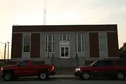 The former Morrilton Post Office is a historic post office building at 117 North Division Street in downtown Morrilton, Arkansas. It is a single-story masonry structure, built of brick and limestone in a simplified Art Deco style. Its facade is divided into five bays, the outer two separated by brick piers from the inner three. The inner three are articulated by limestone pilasters, and feature large multipane windows and the main entrance. The interior features a mural entitled Men at Rest by Richard Sargent, painted in the 1930s as part of a federal works project.[2]