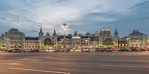 Belorussky railway station (Russian: Белору́сский вокза́л, IPA: [bʲɪɫɐˈruskʲɪj vɐɡˈzaɫ]) also referred to as Moscow–Passenger–Smolenskaya[1] (Russian: Москва́-Пассажирская-Смоле́нская, lit.'Moskva-Smolenskaya'), Informally the whole station can be called as Moscow Belorusskaya (Russian: Москва Белорусская, lit.'Moskva Belorusskaya'),[2] is a railway terminal of the Moscow Railway[3] located at the front of Tverskaya Zastava Square in Central Administrative Okrug, Moscow. The station is one of nine railway terminals of Moscow. It was opened in 1870 and rebuilt in its current form in 1907–1912.