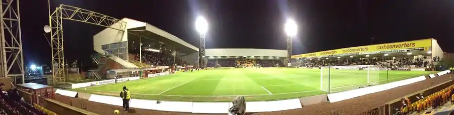 Fir Park's current safety certificate limits the capacity to 13,742, all-seated in accordance with the Taylor Report although the ground is listed as 13,677.[4] Its average home gate for the 2018–19 season was 5,448. The club's record attendance for a home match is 35,632, against Rangers in a Scottish Cup quarter-final replay on 12 March 1952, but as season ticket holders were not counted at the time, the true attendance would be over 37,000.[54]