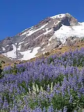 On the southeast side of the mountain, the Mount Adams Recreation Area, another very popular area, offers activities such as hiking, camping, picnicking, and fishing. The area features Bird Creek Meadows, a popular picnic and hiking area noted for its outstanding display of wildflowers,[52] and exceptional views of Mount Adams and its glaciers, as well as Mount Hood to the south.[53] Some areas of the Yakama Indian Reservation are open for recreation, while other areas are open only to members of the tribe.[21]