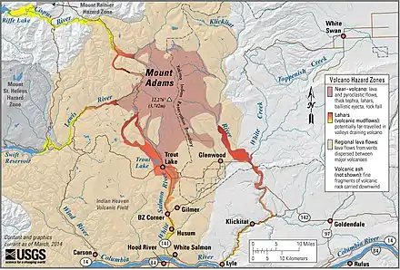45. 1 2 Vallance, James W. (1999). Postglacial Lahars and Potential Hazards in the White Salmon River System on the Southwest Flank of Mount Adams, Washington. U.S. Geological Survey Bulletin 2161 (Report). USGS. Retrieved 2008-08-04.