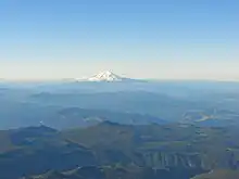 On a clear day from the summit, other visible volcanoes in the Cascade Range include Mount Rainier, Mount Baker, and Glacier Peak to the north, Mount St. Helens to the west, all in Washington; and Mount Hood, Mount Jefferson, and the Three Sisters, all to the south in Oregon.[22][23]