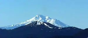 Mount Ashland is the highest peak in the Siskiyou Mountains of southern Oregon.[2] It was named for the city of Ashland, located 8.6 miles (14 km) north of the mountain. The Siskiyou Mountains are a subrange of the Klamath Mountains in northwestern California and southwestern Oregon. The mountain is part of the Rogue River–Siskiyou National Forest, which encompasses most of the Siskiyou Mountains. The Oregon–California border is 5 miles (8 km) south of the mountain.