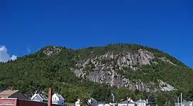 The mountain is flanked by Jericho Mountain to the southwest, Mount Jasper to the north across the Dead River valley, Cates Hill to the northeast beyond Mount Jasper, and Mount Carberry to the southeast across the Androscoggin River. With 25 established routes to the summit, the mountain is a popular destination for beginner and intermediate hikers.[3] On the southeastern side of the mountain lies the Overlook, from which views of the city of Berlin and the Mahoosuc Range can be obtained.
