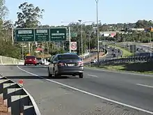 Between 2007 and 2009 4.5 kilometres (2.8 mi) of the highway in the Logan City local government area was upgraded.[14] As well as providing dual carriageways, the work included building service roads so that local traffic does not have to travel on the main carriageways, thereby reducing congestion.