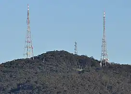 The mountain has two broadcast transmission towers. Since the 1960s their main function has been to transmit analogue television on VHF. In the 1990s two UHF analogue stations began to transmit from there. Since 2003, they have also been transmitting digital television in the UHF band (all digital television in the lower Hunter is on UHF). The analogue television transmitters (VHF and UHF) were switched off in November 2012. One tower, built to transmit the original VHF analogue television services of NBN Television on VHF Channel 3, transmits NBN and two government digital TV services. It is commonly referred to as the "NBN Tower". The second tower is transmitting the other two commercial digital (UHF) TV stations. The second tower is controlled by Broadcast Australia, being formerly run by the National Transmission Authority. There are many other radio antennae on these towers, including 105.3 NEWFM (Newcastle's original commercial FM broadcaster – launching in 1989) and those belonging to Amateur Radio repeater and beacon stations.