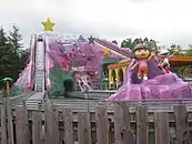 In addition, the Wonderland Studios (kids' area) was expanded with the Nickland by 15,000 m² for the 2007 season. The themed area, built in collaboration with the German television station Nick, deals exclusively with the station's characters and themed worlds. Attractions include a Suspended Family Coaster (Jimmy Neutron’s Atomic Flyer) and a water attraction (Spongebob Splash Bash). In addition, the 2007 season brought a change of motto, instead of "A day like in the film" it is now "Hurray! I'm in the film" (until 2004 the slogan was " Hollywood in Germany "). With the opening of Nickland, old attractions such as Dishwasher were re-themed.