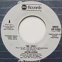 "Mr Cool" was Kevin Ayers' USA promotional single issued to publicize his album, Yes We Have No Mañanas (So Get Your Mañanas Today). It featured a mono mix of the song on one side coupled with a stereo mix on the flip side.