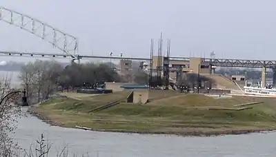 Mud Island is a small peninsula in Memphis, Tennessee.[1] It is bordered by the Mississippi River to the west and the Wolf River and Harbor Town to the east. Mud Island River Park is within the Memphis city limits, 1.2 miles (1.9 km) from the coast of downtown. Mud Island includes a museum, restaurants, an amphitheater, and a residential area.[2] It is accessible by the Memphis Suspension Railway (a monorail), by foot (via a footbridge located on top of the monorail), kayak, paddle board, or automobile.[1] Activities on Mud Island include concerts/performances, kayaking, paddle boarding, and biking.[3] The park is managed and operated by the Memphis River Parks Partnership.[4] Admission to the park is free.[1]