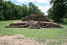 Maeung Fa Daet Song Yang is a significant moated archaeological site in Northeast Thailand along the Pao River. The site is located in the Kamalasai district, Kalasin province on the Khorat Plateau with the Sakhon Nakhon basin to the north, and the Chi River system to the south.[1] The site on Muang Fa Daed was also an excellent location for trade and transportation due to its proximity to multiple waterways. [1] This site shows evidence of a large-scale Buddhist community and is often associated with the Davaravati culture based on the multitude of artifacts and features found at the site. The site was first excavated in 1968 and later by Phasook Indrawood in 1991,[2] who dug nine test pits and found two phases of occupation.[2] This region also indicated that agriculture was a large part of the lifestyle here. The site was thought to have been founded by Chao Fa Ra-ngum in 621 AD.[3]