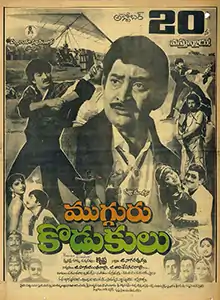 Mugguru Kodukulu (transl.Three sons) is a 1988 Indian Telugu-language action drama film directed by Krishna. The film stars Krishna himself alongside his real-life children, Ramesh Babu and Mahesh Babu. Radha, and Sonam play the female leads. The film was produced by Ghattamaneni Nagarathnamma under the Padmalaya Studios banner. Music was composed by Chakravarthy. The film was a box office success.[1]