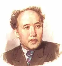 Mukhtar Omarkhanuli Auezov (Kazakh: Mūhtar Omarhanūly Äuezov, Мұхтар Омарханұлы Әуезов, مۇحتار ومارحانۇلى اۋەزوۆ, Kazakh pronunciation: [mo̙χtɑɾ ɔmɑɾˈχɑno̙lɯ æwˈjezəf]; Russian: Мухта́р Омарха́нович Ауэ́зов, Mukhtar Omarkhanovich Auezov; 28 September 1897 – 27 June 1961) was a Kazakh writer, a social activist, a Doctor of Philology, and an honored academician of the Soviet Union (1946).