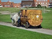 The use of horses for waste collection can have many applications, including collecting household waste and special waste from the selective sorting process (such as batteries, glass and cardboard), the collection of garbage cans and litter garbage cans in streets and parks, and even steel, aluminium and plastic. The presence of the horse makes it easier to communicate with the public about waste sorting and management. As a result, the volumes recovered are often greater. The horse-drawn carriage also enables more effective door-to-door collection from both private and professional customers. There are also seasonal collection schemes, such as at Christmas markets[18] or for used Christmas trees.[19] Horse-drawn vehicles are seen as a more effective way of raising awareness, especially among children. This practice also enhances the visibility of the individual responsible for collecting waste. Furthermore, some reports indicate that workers are more driven and productive when working with horses. Problems encountered with vehicle traffic are considered to be just as, if not less, restrictive than with a truck. Lastly, horses are more efficient at negotiating very narrow or steep streets, and at working short distances with frequent stops.[18] On the other hand, public acceptance of the use of horses in this context is lower, with 72% of French people saying they are opposed (Kantar TNS poll, 2003). Local authorities are also encountering problems in adapting staff and equipment.[18]