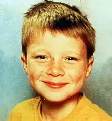 Daniel Charles Handley (27 April 1985 – 2 October 1994)[1][2] was fixing a chain on his bicycle in Beckton, East London, on 2 October 1994, when he was approached by two men in a Peugeot 405. The men – boyfriends Timothy John Morss (born 11 March 1963) and Brett Tyler (born 21 June 1965)[3] – had been cruising the area looking for a young, pre-teen, fair-haired boy to make real their fantasy of abducting such a boy, sexually abusing him and then murdering him. The driver of the car claimed to be lost, and asked Handley to show him directions on a map. The map was placed across the back seat of the car and, when Daniel leaned inside to look at it, one of the men pushed him into the car and the other drove them off. They drove Handley to a flat, where each man sexually abused him in turn while the other videoed the activity with a camcorder. Afterwards, they took Handley to a layby near Hungerford in Berkshire, where he was again sexually abused before being strangled to death with a car tow rope.
