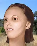 The young woman was initially believed to be between 20 and 23 years old and was 5 ft 9 in tall, weighing 112 pounds.[12] The woman had green eyes, tinted dark brown hair, and had vaccination scars on both her left arm and left thigh. A one-quarter-inch horizontal scar was also visible beneath her left breast, and a birthmark was located upon her right buttock.[13] She had also received several silver amalgam fillings in both her upper and lower jaw. Besides these traits, the victim had no other distinctive features, and she had no identification in her possession at the time of her discovery.[1]