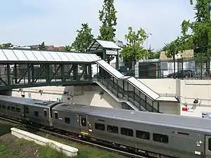 Murray Hill station was originally built in April 1889, and torn down in 1912 when the Port Washington Branch was depressed below grade in this area during a grade crossing elimination project, which took place between 1912 and 1914.[3] The station house was replaced in July 1914 with one built on a bridge built over the tracks.[4] This structure was torn down in 1964, and Murray Hill continues to operate as an unmanned station to this day. Minor renovations took place between 1991 and 1993. A new pedestrian bridge as well as other amenities were added in 2005. Two elevators were opened by May 4, 2020.[5][6][7][8] The elevators were originally slated for completion in 2019, but were delayed to mid-2020 due to delays in the delivery of elevator cabs.[9]