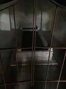 Quli Khan remains buried under the stairs to the main-floor of Katra Masjid[note 4]—a five-bayed rectangular mosque constructed by himself—pursuant to his wishes.[30][31] Popular belief holds the mosque to have been constructed of material obtained upon destruction of several Hindu temples and residences;[note 5]