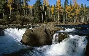 The Murtle River is known for having many waterfalls along its course. Between Murtle Lake and the Clearwater River, the Murtle drops over seven named waterfalls: McDougall, Meadow, Horseshoe, Majerus, Dawson, The Mushbowl and Helmcken Falls.[2]