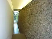 The museum is built over a huge parking lot on three levels keeping it safe from flooding from the Isère River.[13] For the exhibition areas, the museum itself is built on three levels, but most of the display halls are located at level 0. At this level, the halls are served by a wide central aisle. On the left are the five sequences of ancient art, on the right are temporary exhibitions. The end of the aisle has been left empty of any work, in an arc, this huge area is dedicated to the 20th century, and also gives access to the Tower of the Island.