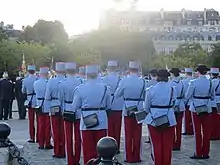 The Musique de l'Arme Blindée Cavalerie (M-ABC) (English: Cavalry and Armored Branch Band) is a military band of the French Army's Armored Branch. It is stationed in Montigny-lès-Metz. It is under the immediate command of the Army Music Command, of which it is one of six bands.[1] It is under the operational command of the 4th Hussar Regiment.[2] It has taken part in events such as the Saumur International Festival of Military Bands and the Spasskaya Tower Military Music Festival and Tattoo.[3] In the latter performance in Moscow, it performed with the Fanfare de l'Ecole d'Application de l'Artillerie and singer Mireille Mathieu.[4] It has also performed in other countries like China, Turkey, and Hungary. It has 40 musicians that consist of a large wind band and various small ensembles (wind quintets, brass, saxophone quartets, clarinets).[5][6]