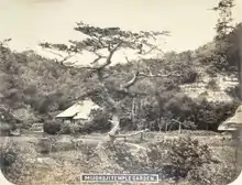 The site was originally occupied by a temple called Honkuku-ji (本国寺), which was later transferred to Kyoto.[7] Its first chief abbots were men from important families, and one of them was Nichiro, better known as Nichiei, the name he assumed when he became a priest, who was an uncle of Ashikaga Takauji and the temple's fifth chief abbot.[4] Nichiei was a natural son of Prince Morinaga,[8] and for this reason he rebuilt the temple in 1357 dedicating it to his father.[9] Nichiei was born from a woman called Minami no Ōnkata, who attended the prince while he was a prisoner of the Ashikaga in the cave now at Kamakura-gū.[4] He and his mother are buried within the temple, while Prince Morinaga's grave is in nearby Nikaidō.[9] Nichiei installed two cenotaphs in memory of his parents on top of the hill behind the main hall.[4] During the Edo period the temple was protected and maintained by the Tokugawa and their vassals.[6] The temple is supposed to have been entrusted to Nichiei by Nichiren himself.[4]