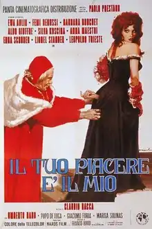 My Pleasure Is Your Pleasure (Italian: Il tuo piacere è il mio) is a 1973 commedia sexy all'italiana anthology film written and directed by the cinematographer Claudio Racca, at his writing and directorial debut. It is loosely based on Honoré de Balzac's novel Les Cent Contes drolatiques (1832–1837).[1][2][3]