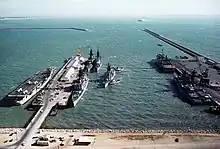 Spanish and American ships moored at the docks of the Rota base in 1981
