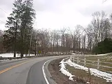 At this point, the road makes a turn to the southeast to enter the small hamlet of Kitchawan, located at NY 134's junction with Pines Bridge Road (unsigned County Route 1323 or CR 1323).[3] Pines Bridge Road was once NY 135, and its junction with NY 134 in Kitchawan was NY 135's eastern terminus.[4] From Pines Bridge Road, NY 134 bends southward to run alongside a reservoir inlet connecting to Cornell Brook. After about 1,500 feet (460 m), the route makes a final turn to the east to cross Cornell Brook and reach its east end at an intersection with NY 100 (Saw Mill River Road).[3]