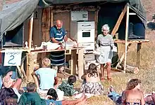 The 1981 festival village was designed around a central rotunda with a maypole, where spontaneously, poets, buskers and ravers alike featured. Nambassa vigorously promoted handcrafts, not only because of their therapeutic qualities, but because they had the potential to be a source of revenue to lifestyle proponents looking towards self-sufficiency and economic independence. From the festival village one could attend any number of craft workshops, pick up a copy of the daily Nambassa Waves newspaper, go buy fresh bread cooked in the wood-fired oven bakery constructed in a converted hay shed, go do some shopping, check out Radio Nambassaland, pick up some information from the mother centre, or just simply chill out and absorb the atmosphere.