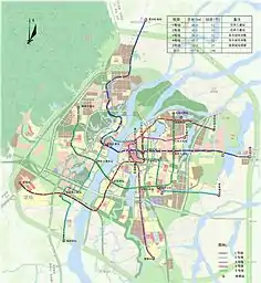 Nanchang Metro, officially Nanchang Rail Transit, is a rapid transit system in Nanchang, Jiangxi, China. As of 2021, four lines are operational. The Metro opened for commercial operation in December 2015.[3] The network is currently 128.3 km (79.7 mi) in length in December 2021 with 4 lines. A total length of 163 km (101.3 mi) of network is planned, with Line 5 which is currently under planning.[4]