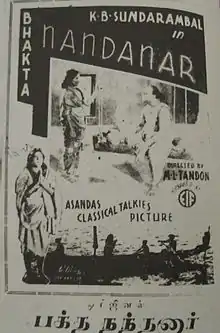 Bhakta Nandanar (transl. Devotee Nandanar) is a 1935 Tamil-language film directed by Manik Lal Tandon. It marked the cinematic debut of the Carnatic singer and stage artist K. B. Sundarambal. She was paid a then unprecedented ₹100,000 (equivalent of ₹60 million (2013 prices)) as salary for this film. This was also the first film for Ellis R. Dungan.[1][2][3][4][5][6] No print of the film is known to survive, making it a lost film.[1]
