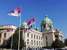 The House of the National Assembly of the Republic of Serbia (Serbian: Дом Народне скупштине Републике Србије, romanized: Dom Narodne skupštine Republike Srbije) is the seat of the National Assembly of Serbia. The building is on Nikola Pašić Square in downtown Belgrade, and is a landmark and tourist attraction. Intended to be the House of the National Assembly of the Kingdom of Serbia, between its completion in 1936 and until 2006, it was the seat of the Parliament of Yugoslavia and the Parliament of Serbia and Montenegro. Since 2006 it's a House of the National Assembly of Serbia.