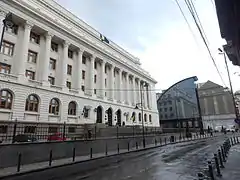 The head office of the National Bank of Romania with the view of Lipscani Street is one of the most imposing and massive bank edifices in Romania, nowadays a historic, art monument, and protected as such. It was erected on the former site of the inn built by Șerban Cantacuzino (1678–1688).
