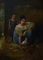 National Museum, Padre Burgos Avenue, Ermita, Manila | 1890 | The oil-on-canvass painting of master painter Simon Flores depicts the mother and daughter caught feeding chickens in a commonplace setting. The painting is regarded as a transition from the miniaturist school of homegrown portraitists of the nineteenth century to the idyllic tableaux of the American period academic masters. | [1] | ||||||