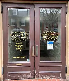 The museum, which was originally proposed by Dr. Gordon E. Damman, a private collector of Civil War-era medical artifacts, was incorporated in 1990 and first opened to the public in 1996.[1] The museum moved into its current location – a three-story 19th century brick building that was home to a furniture maker/undertaker operation during the Civil War – in October 2000.[2]