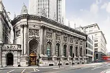 From 1844 on, the Union Bank was located at Princes Street on Bank Junction, across from the Bank of England. On that site the bank erected a prominent new head office building, designed by Philip Charles Hardwick and completed in 1865, remodeled in 1887.[11] That building was in turn replaced by the branch building of National Provincial Bank on the same location, designed by Edwin Cooper and completed in 1932.[12]