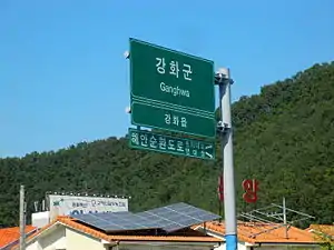 Ganghwa-eup sign on Gyeonggi-Incheon boundary