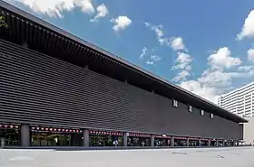 ![]() The exterior of the National Theatre building recalls the ancient azekura-zukuri style of the Shōsōin. | |