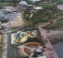 An overhead view of the 1988 Glasgow Garden Festival site.