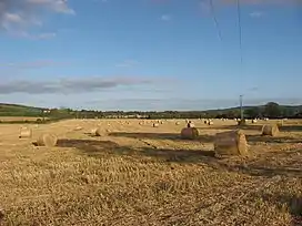 Typical hill elevations run between 140 and 150 metres, with the highest point in the area being the 176m Knockbrack (Irish: An Cnoc Breac, meaning 'the speckled hill').[1][5] Limestone quarrying has been carried out in the hills, and the London Encyclopaedia (1829) remarked, "there are coals at Naul...but the coal vein is not worked."[6]