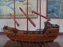 The Đại Việt sử ký toàn thư records that in 1467 in An Bang province of Đại Việt (now Quảng Ninh Province) a Chinese ship blew off course onto the shore. The Chinese were detained and not allowed to return to China as ordered by Emperor Lê Thánh Tông.[4][5][6][7][8] This incident may be the same one where Wu Rui was captured.[9] One of the renowned victories in Vietnamese naval history was the Battle of Rạch Gầm-Xoài Mút in Tây Sơn dynasty, during which Nguyễn Huệ (Emperor Quang Trung) defeated the Siamese (Thai) naval force. The battle occurred in present-day Tiền Giang Province on 19 January 1785. Nguyễn Huệ's forces completely destroyed over 50,000 Siamese sailors and 300 warships.