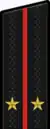 | Генера́л-полко́вник Generál-polkóvnik | Генера́л-лейтена́нт Generál-leytenánt | Генера́л-майо́р Generál-mayór | Полко́вник Polkóvnik | Подполко́вник Podpolkóvnik | Майо́р Majór | Kапита́н Kapitán | Старший лейтена́нт Stárshiy leytenánt | Лейтенант Leytenant | Mла́дший лейтена́нт Mládshiy leytenánt | Курсант Kursant | ||||||||||||||||||||||||||